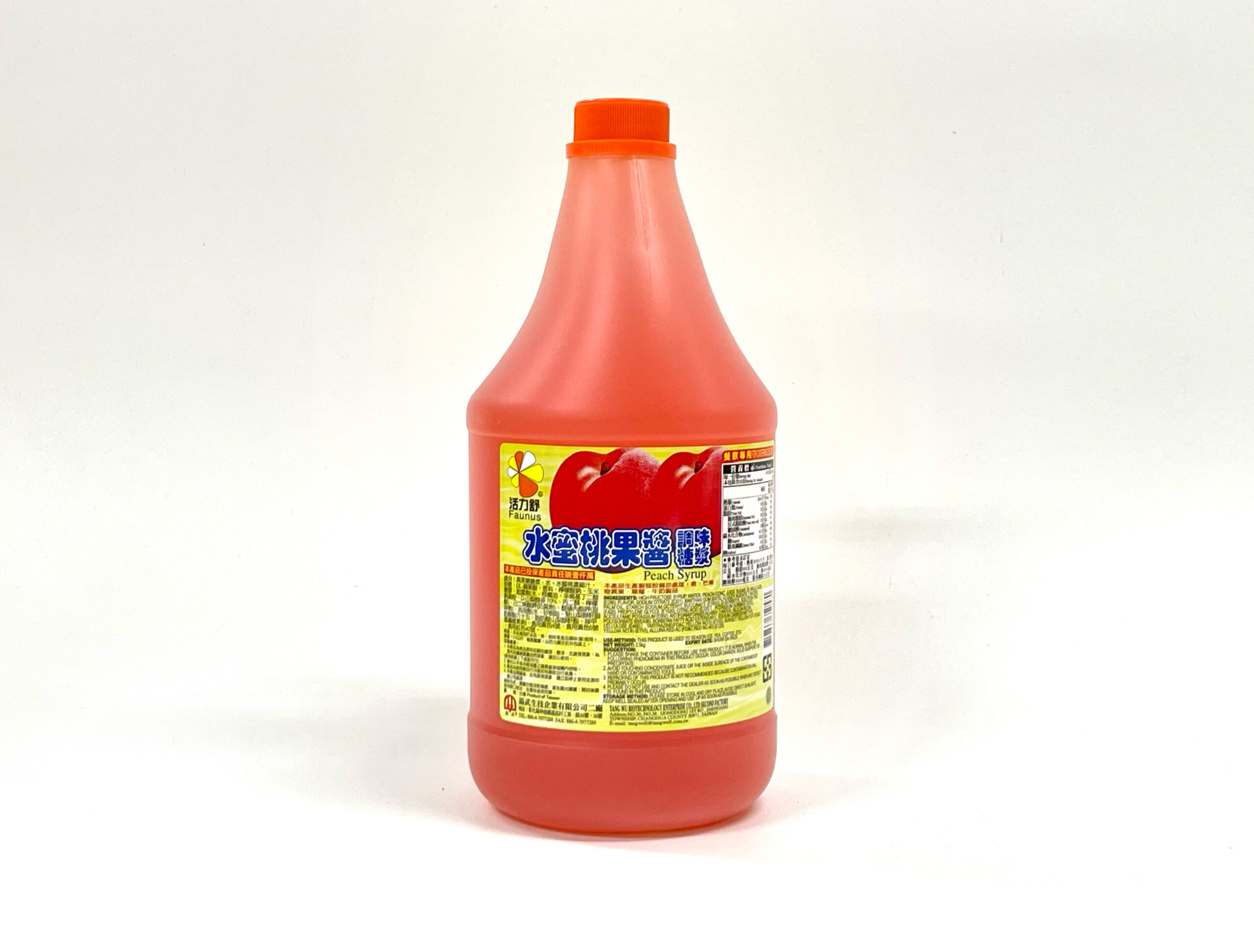 成分:高果糖糖漿、水、水蜜桃濃縮汁、砂糖、DL-蘋果酸、香料、檸檬酸鈉、玉米糖膠、起雲劑(水、棕櫚油、辛烯基丁二酸鈉澱粉、DL-山梨醇液70%、丙二醇、檸檬酸)、己二烯酸鉀(防腐劑)、醋磺內脂鉀(甜味劑)、消泡劑(水、矽樹脂、聚山梨醇甘脂肪酸六十五、脂肪酸山梨醇酐酯、羧甲基纖維素鈉)、食用黃色4號、食用黃色5號、食用紅色40號