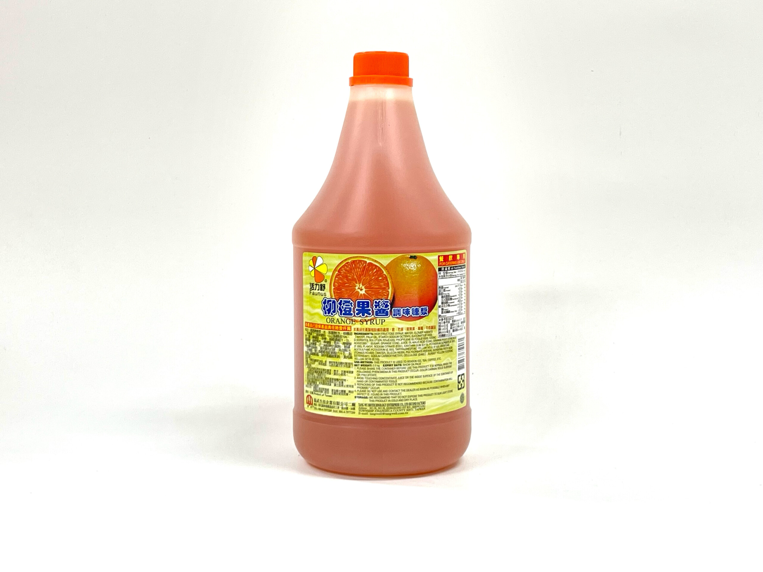 成分:高果糖糖漿、水、起雲劑(水、棕櫚油、辛烯基丁二酸鈉澱粉、DL-山梨醇液70%、丙二醇、檸檬酸)、砂糖、柳橙濃縮汁、DL-蘋果酸、柳橙果肉、檸檬酸、香料、檸檬酸鈉、玉米糖膠、己二烯酸鉀(防腐劑)、醋磺內脂鉀(甜味劑)、食用黃色4號、消泡劑(水、矽樹脂、聚山梨醇甘脂肪酸六十五、脂肪酸山梨醇酐酯、羧甲基纖維素鈉)、食用黃色5號